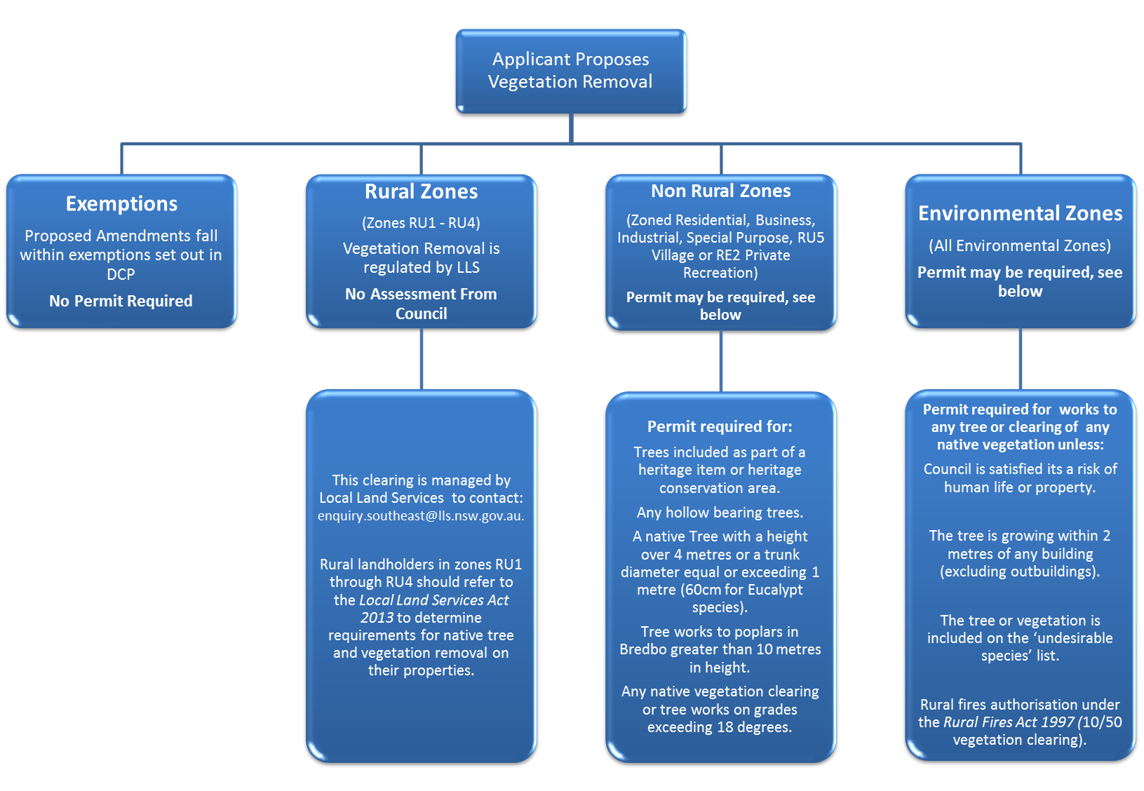 The figure below provides a summary of requirements for vegetation removal under the draft Development Control Plan requirements.